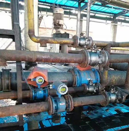 電磁流量計(jì)采用電磁感應(yīng)原理測(cè)量介質(zhì)流體流速的電磁流量計(jì)。它在管道的兩側(cè)加一個(gè)磁場(chǎng),被測(cè)介質(zhì)流過(guò)管道就切割磁力線,在兩個(gè)檢測(cè)電*上產(chǎn)生感應(yīng)電勢(shì),其大小正比于流體的運(yùn)動(dòng)速度。可以用于測(cè)量酸、堿、鹽溶液、水煤漿、礦漿、砂漿灰泥、紙漿、樹脂、橡膠乳、合成纖維漿和感光乳膠等各種懸浮物、氣化汽和粘性物質(zhì)的流量。電磁流量計(jì)密封性能好,還可用于自來(lái)水和地下水道系統(tǒng)。而且測(cè)量過(guò)程不與流體接觸,適于制藥、生物化學(xué)和食品工業(yè)。
