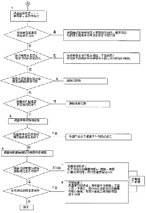 圖5所示足檢查零點(diǎn)堿液用什么流量計(jì)測量不穩(wěn)定的流程。先按流程全面考慮作初步調(diào)查和判斷,然后再逐項(xiàng)細(xì)致檢查和試排除故障。流程所列檢查項(xiàng)口順序的先后原則是: