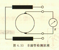 非滿管檢測(cè)也是基于電導(dǎo)率檢側(cè)的方法。在圖4.33所示的電磁流量傳感器中,增加了一個(gè)(或一對(duì))非滿管檢測(cè)電*。當(dāng)導(dǎo)管內(nèi)液體滿管時(shí),頂部電*與其他電*之間的電阻值很小;而當(dāng)存在非滿管情況時(shí),頂部電*與導(dǎo)電液體之間有氣體阻隔,所以電*電阻顯著增大,從而做出非滿管判斷。