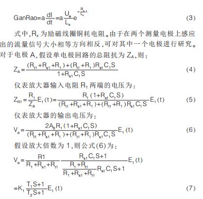 提出在硬件電路上加入模擬開關(guān), 干擾尖峰到來時斷開模擬開關(guān)避免干擾進入后級電路,尖峰過去重新打開模擬開關(guān);K.Saito 等提出漂移校正法,先以高勵磁頻率進行勵磁,在勵磁過程中插入低勵磁頻率提取用于漂移校正的非固定微分噪聲分量,但在插入的低勵磁頻率段漿液噪聲較大且很難將漿液噪聲與流量信號分離,此時的校正因子非單純的非固定噪聲分量,改進措施是長時間取平均值得到穩(wěn)定因子。 傳統(tǒng)方法是同步采樣保持法,即在磁場穩(wěn)定階段采樣。 其他消除干擾的方法有設(shè)置干擾補償機構(gòu)、控制勵磁電流變化率減小干擾幅值、矩形波代替梯形波、希爾伯特黃變換結(jié)合傅里葉變換和程控增益技術(shù)等。經(jīng)上述對現(xiàn)有的文獻分析與總結(jié)可知, 當(dāng)前消除微分噪聲主要從信號處理方面入手,并未對影響噪聲的因素加以研究。 本文建立電*測量回路等效模型,給出仿真模型搭建、參數(shù)取值和仿真結(jié)果分析。