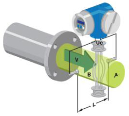 基本上,當導電液體流過磁場時,會感應出電壓。為了測量該產(chǎn)生的電壓(與流動的液體的速度成正比),使用了兩個彼此相對安裝的不銹鋼電*。