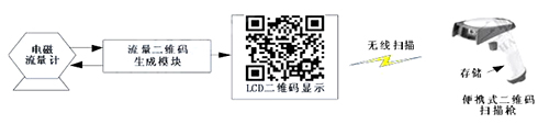 二維碼生成模塊定時向供熱補(bǔ)水流量計發(fā)送采集指令,后者收到指令后發(fā)送流量數(shù)據(jù)。