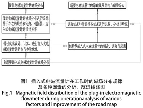 消防水泵流量計因其特殊的結(jié)構(gòu)形式,致使其抗干擾能力較弱、準(zhǔn)確度偏低以及瞬時流量波動過大等不良現(xiàn)象,但便于安裝、造價低廉、普遍應(yīng)用于大管道等特點而存在。為了發(fā)揮其優(yōu)勢,消除其不利因素,對其內(nèi)部結(jié)構(gòu)及其相關(guān)技術(shù)參數(shù)進行優(yōu)化設(shè)計,從而使其準(zhǔn)確度能夠達(dá)到 ±1% FS,使抗干擾能力得到*大地增強。本文主要通過優(yōu)化設(shè)計、選擇材料和試驗,使消防水泵流量計的穩(wěn)定性和準(zhǔn)確度大幅度提高,并提出解決措施,對實際應(yīng)用具有參考價值。分析與研究程序圖如圖 1 所示。