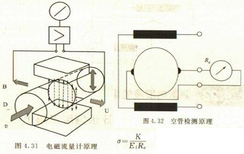 出水口流量計是專為測量導電液體的體積流量而設(shè)計的。測量原理是基于法拉*電磁感應(yīng)定律。按照該定律,導電流體通過磁場作切割磁力線運動時,在垂直于磁場及流速的方向上產(chǎn)生感應(yīng)電動勢,此電動勢由4.14節(jié)中的式4.24)給出。其原理如圖4.31所示。