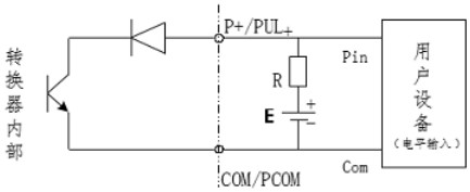 PUL+/ P+、ALM+(AH)、ALM-(AL)和 PDIR(FDIR)均為集電*開(kāi)路(OC 門)輸出(參閱圖 3.6b、3.6d,用戶接線時(shí)必須參照如下電路外接電源和負(fù)載: