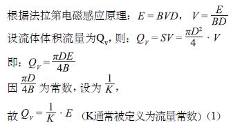設(shè):E為感應(yīng)電動(dòng)勢(shì);B為感應(yīng)強(qiáng)度(T);D為測(cè)量管內(nèi)徑(m);V為平均流速(m/s);S為管道截面積;K為流量常數(shù)