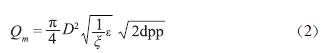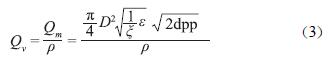 設(shè)Qm為質(zhì)量流量;Qv為體積流量;ζ為流量計(jì)探頭的阻斷系數(shù)(也可為常數(shù)K);ε為流體膨脹系數(shù);D為測(cè)量管內(nèi)徑;dp為流體差壓;ρ為工況下的流體密度,則