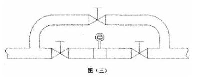 5.被測介質是嚴重污濁液體過容易在管道結垢的液體,可以在安裝傳感器的測量管道上加一個旁通管,以便于拆卸清洗。如圖三所示。
