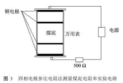 采用四相電*參比電阻法測量煤泥電阻率,設(shè)計實驗電路如圖3所示。實驗步驟如下: